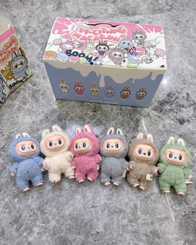 عروسک لبوبو مدل ماکارون، با الهام از رنگها و لطافت شیرینیهای ماکارون، طراحی شده است. رنگهای ملایم مانند صورتی پاستلی، آبی آسمانی و زرد کرمی، جلوهای دلنشین به این عروسک میبخشند که در نگاه اول دل هر بینندهای را میبرد.