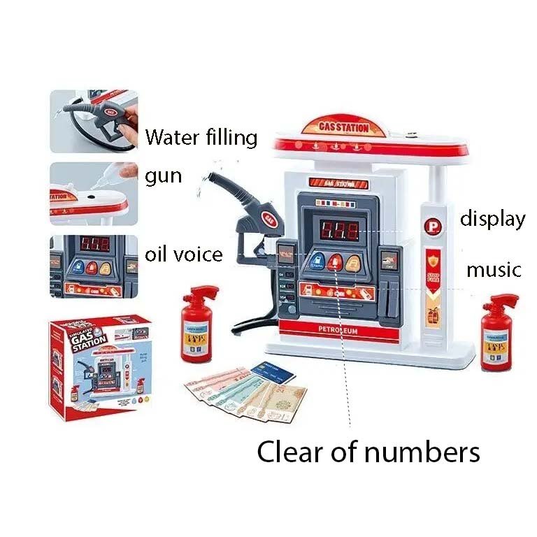 - سایر توضیحات: از مواد ایمنی و ساخته شده ی ABS, بی خطر, دارای مخزن اب که با فشردن نازل از ان آب سرازیر شده و شبیه سازی بنزین را انجام میدهد, دارای موزیک و صدای بنزین نمایشگر و دکمه ریست ان, محصولی جدید و زیبا محصولی کاربردی و جذاب که یک شبیه ساز موقعیت سوختگیری در پمپ بنزین است