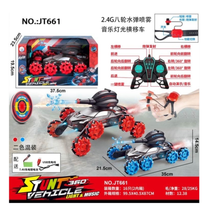 اسباب بازی کنترلی مدل تانک طرح 8 چرخ تیر پرتابی شارژی دودزا 2 کنترله کد JT661